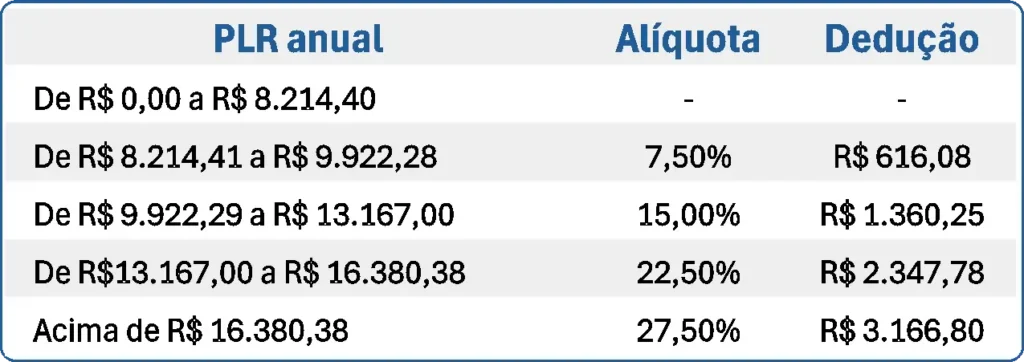 Devemos lembrar aos trabalhadores que valores de PL até R$ 8.214,40 são isentos de incidência de Imposto de Renda, sendo aplicados às faixas de salários superiores descontos que variam de 7,5% a 27,5%, conforme tabela abaixo: