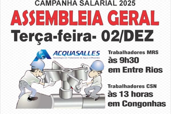 ASSEMBLEIA NO DIA 2 DE DEZEMBRO VAI ABRIR CAMPANHA SALARIAL NA ACQUASALLES