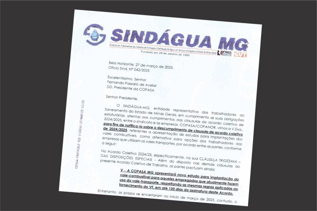 Sindicato envia carta aos prefeitos apontando perigos da implantação de PPP da Copasa em 92 municípios Carta enviada aos prefeitos aponta os perigos da implantação de PPP da Copasa em 92 municípios do Jequitinhonha, Mucuri e Norte de MinasO SINDÁGUA, reforçando a intensa luta em defesa do saneamento público e contra a privatização da água,…